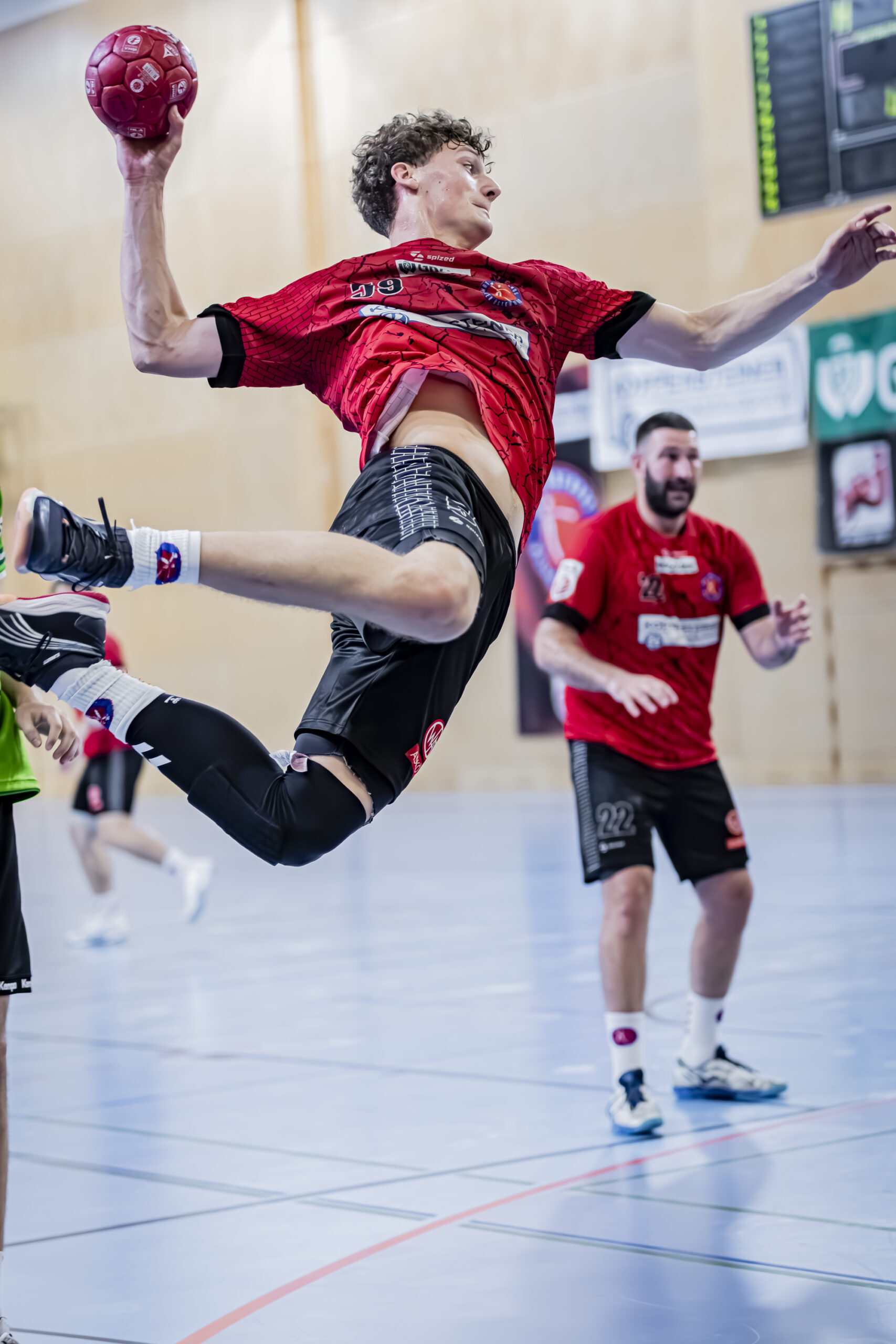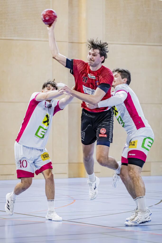 Es war ebenfalls bezeichnend, dass ausgerechnet Fünfhaus-Rückraumspieler John „Bomber“ Baxter für die knappe 14:13-Pausenführung sorgte. Mit insgesamt elf Toren lieferte der Nachwuchsteamspieler mit Doppelspielberechtigung für den Erstliga-Klub Jags Vöslau die Show dieses Handballabends in der Sporthalle Tellgasse. Egal ob Sprungwurf aus dem Stand oder Alleingang, Baxter war trotz Manndeckung kaum zu stoppen.